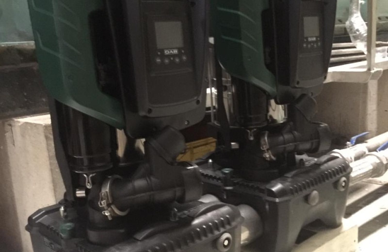 Previous on/off booster sets have been replaced by a booster sets with variable frequency drive, that keeps the pressure constant by varying the frequency of the motor according to the request and also, thanks to the silent water-cooled permanent magnet motor, it allows greater efficiency and energy savings.